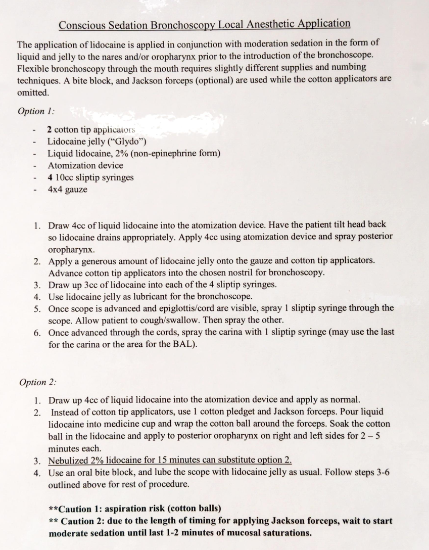- use lidocaine 2% solution for atomizer and Jackson forceps