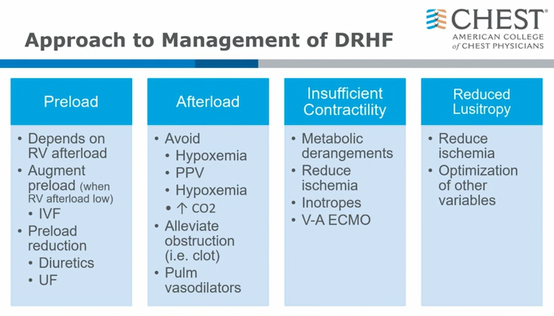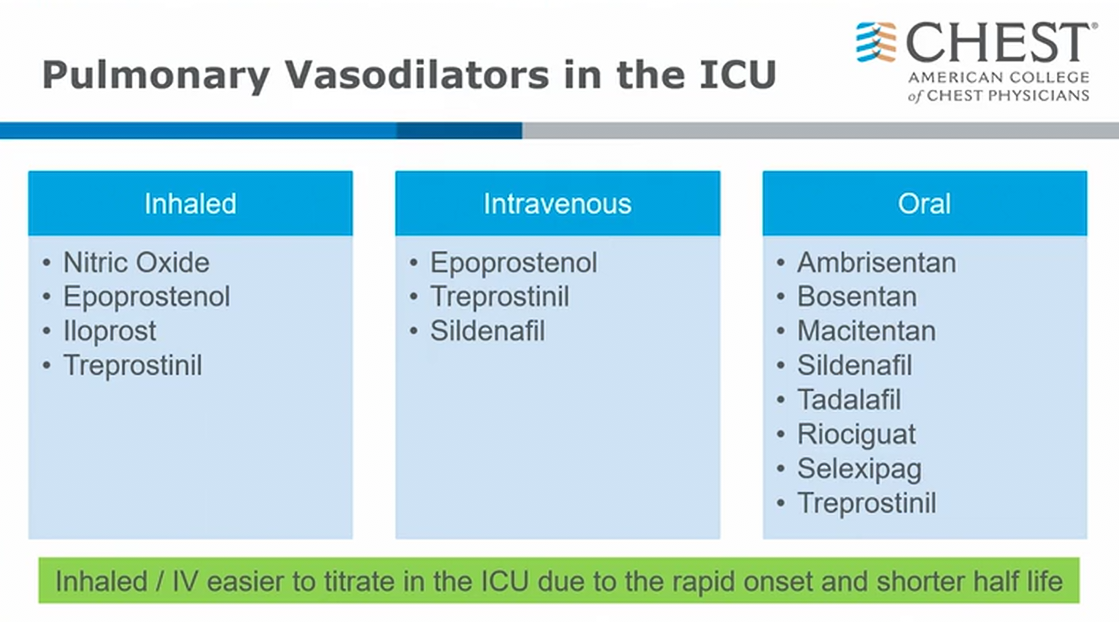 - inhaled NO and Epoprostenol are typically used for high RV afterload but also sometimes used for patients with refractory severe hypoxemia