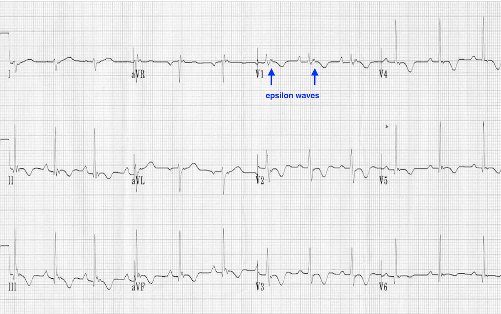 epsilon wave on EKG is arrhythmogenic right ventricular cardiomyopathy