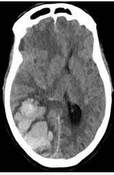 A 45-year-old woman with a medical history of hypertension presents with the acute onset of loss of consciousness and left hemiparesis. She undergoes intubation in the field for poor airway protection. A CT scan obtained at admission is shown (Figure 1). The CT scan showed no extension of the hemorrhage into the ventricular system. On examination, she has a BP of 190/100 mm Hg, heart rate of 70/min, respiratory rate of 12/min with pressure-control ventilation, and a temperature of 37.9 °C.