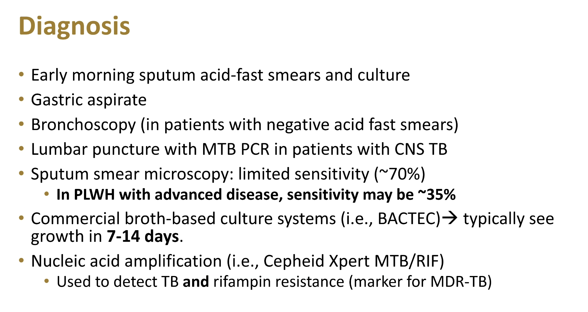 HIV diagnosis related: HIV human immunodeficiency viruses tags: #literature #id 8 hours apart x3 bronchoscopy only if patients can’t produce sputum Links to this note HIV human immunodeficiency viruses HIV diagnosis