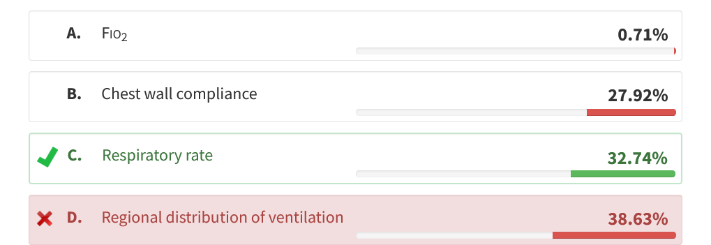 Chest wall compliance is a reflection of the relationship between applied pressure and volume change determined by chest wall mechanics—it does not reflect power (choice B is incorrect). The regional distribution of ventilation impacts the distribution of power within the respiratory system (choice D is incorrect). Ventilation (and power) distribution is driven by regional stress and mechanical properties, and regional injury reflects the ability of different regions to absorb energy and change volume. Our understanding of VILI is constantly evolving.
