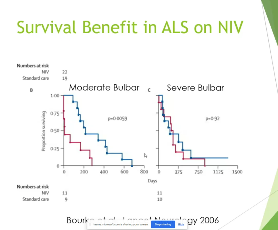 - ALS pts with severe bulbar symptoms don’t benefit as much