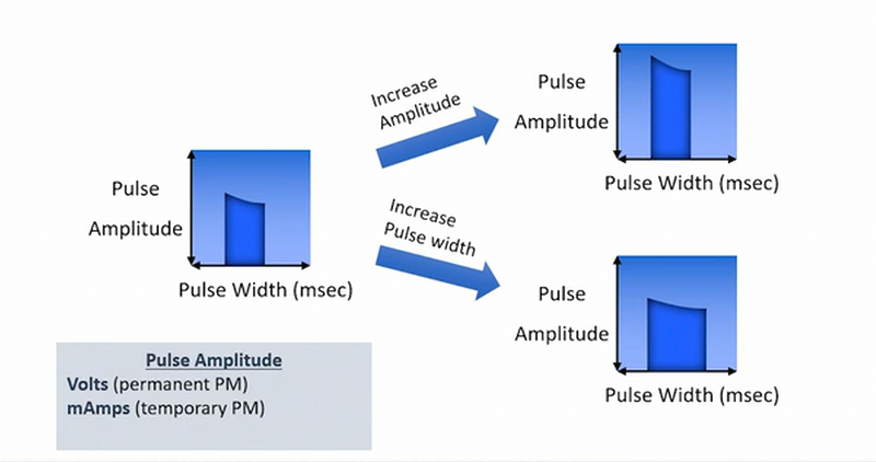 - permanent pacemaker can adjust both time delivers (volts) and amplitude (mAmps)