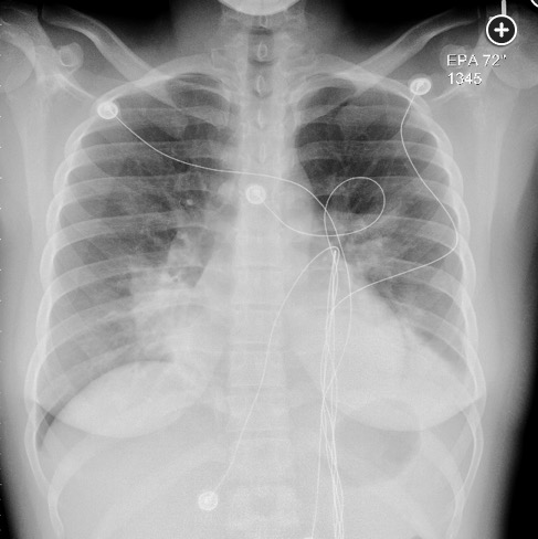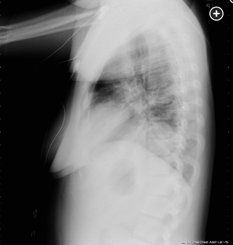 There were no symptoms prior to her acute illness that suggested a histamine-mediated phenomenon as might occur with a carcinoid tumor, and there does not appear to be any evidence of volume loss in her lungs that might occur on the basis of an obstructing airway lesion with a secondary pneumonia (choice C is incorrect).