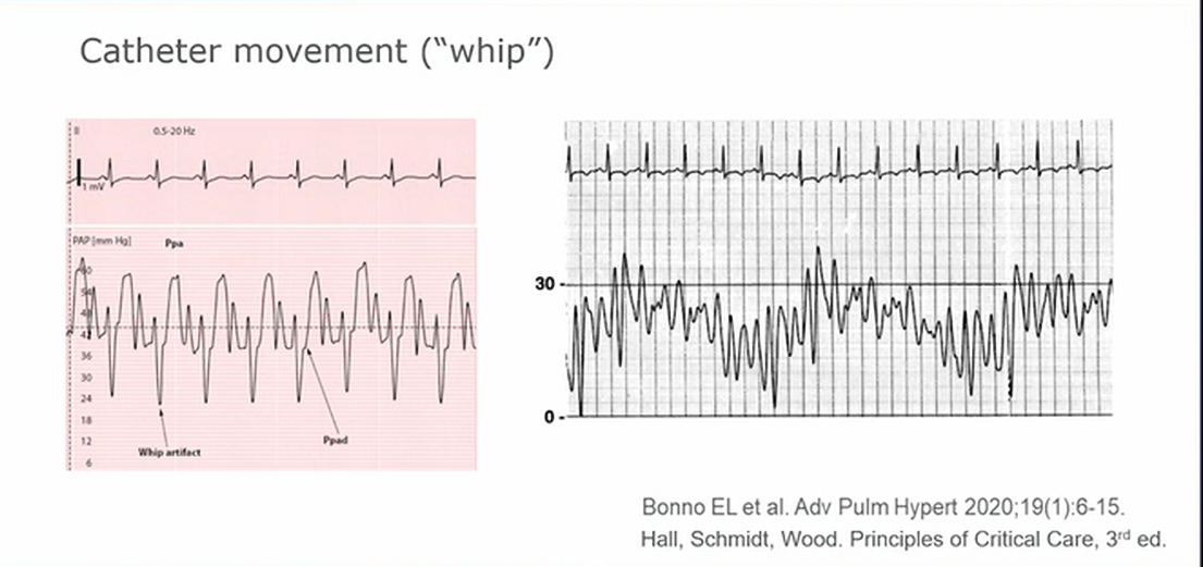 - seen in hyperdynamic states (anxious patient, sepsis with high cardiac output, HR is high and matching natural resonance of catheter) 1