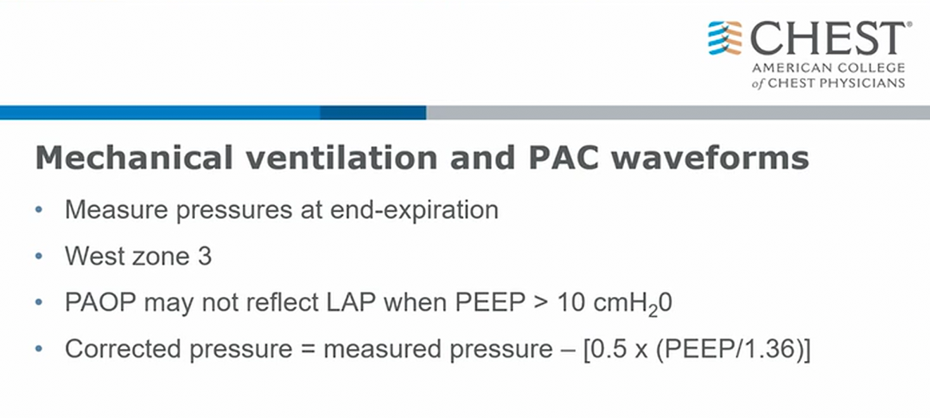 - higher PEEP (>10) => vasculature in lung might not fill => region of lung becomes West zone 1 => inaccurate wedge pressure1