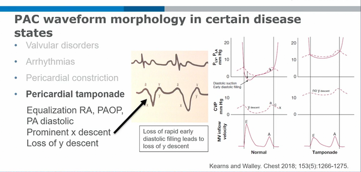 pulmonary artery catheter tracing in tamponade related: pulmonary artery catheter tags: #literature #cardiology #icu steep X descent, loss of y descent y: loss of early diastolic filling1 Links to this note pulmonary artery catheter pulmonary artery catheter tracing in tamponade pericardial effusion with tamponade physiology pulmonary artery catheter tracing in tamponade Footnotes CHEST Board Review Critical Care? ↩